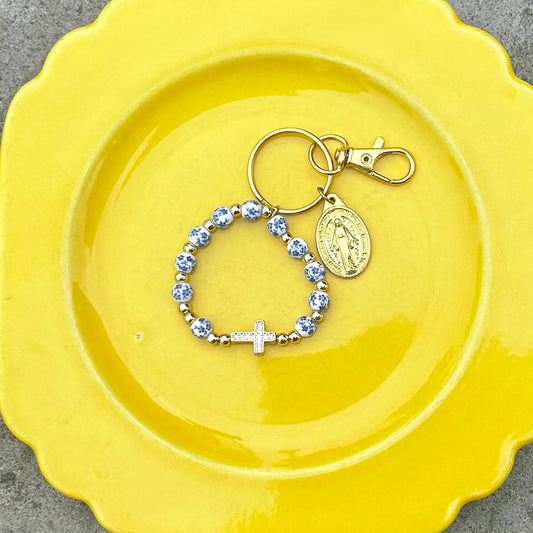 Catholic Floral Bead Rosary Keychain Bag Charm