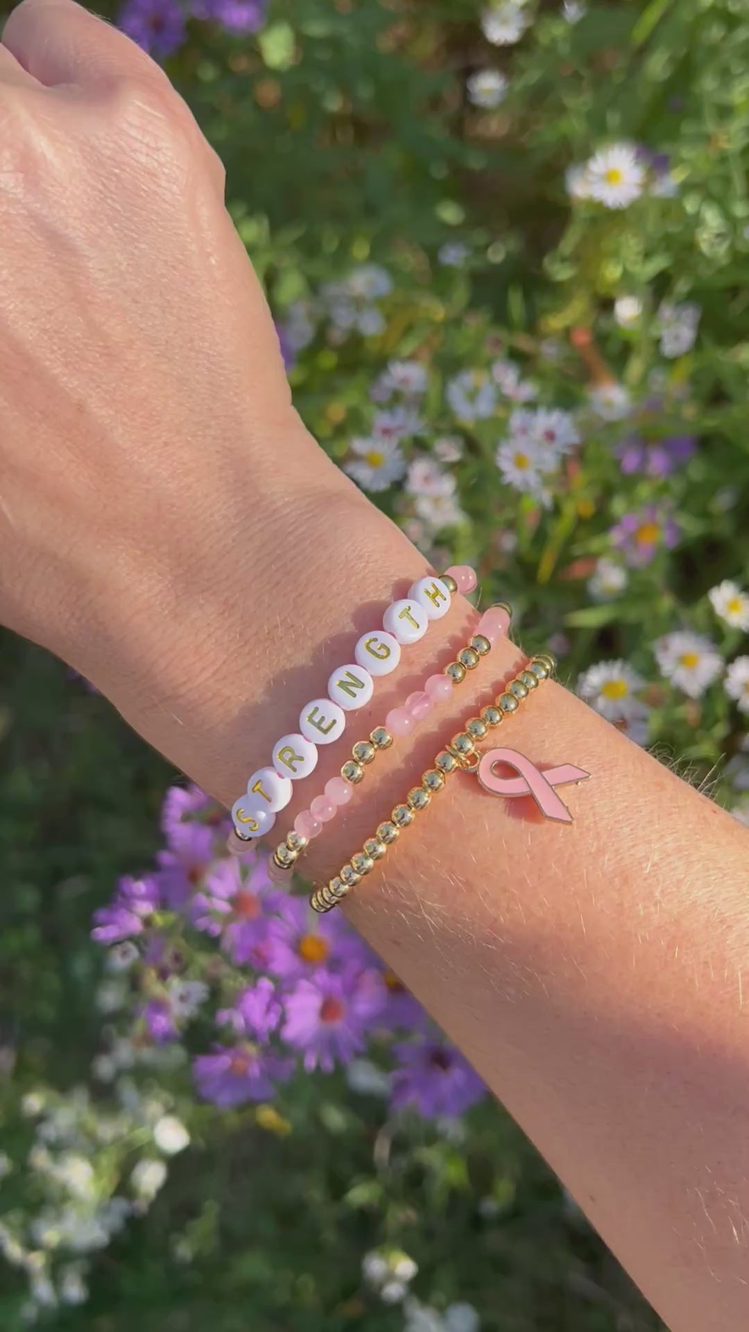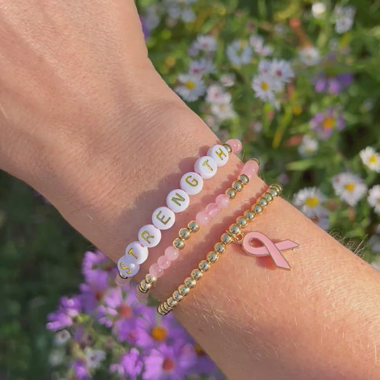 ✨ Breast Cancer Awareness Custom Beaded Bracelet Stack ✨