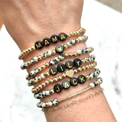 Our personalized gold filled bracelets are the perfect everyday accessory thatās as meaningful as it is stylish. Each bracelet is crafted with high-quality 14k gold filled beads that are waterproof and tarnish-resistantāmade to last through daily wear without losing their shine.
